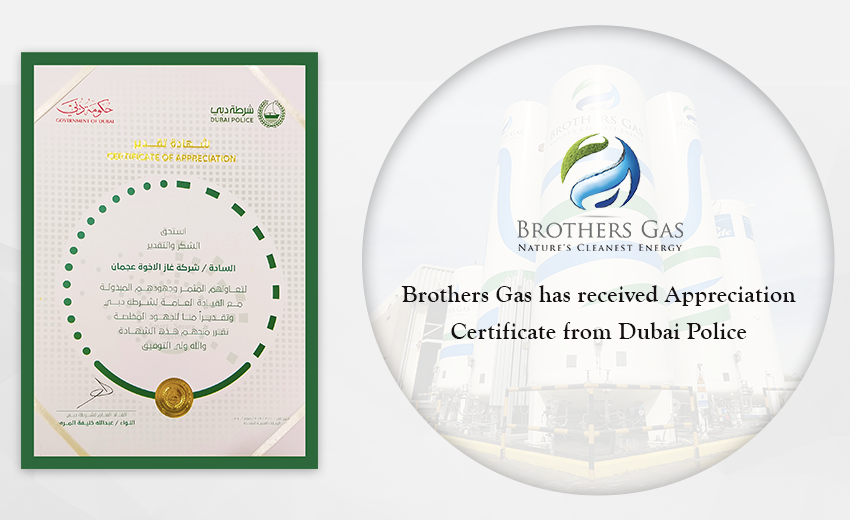 We are delighted to announce that BROTHERS GAS has received an Appreciation Certificate from DUBAI POLICE.